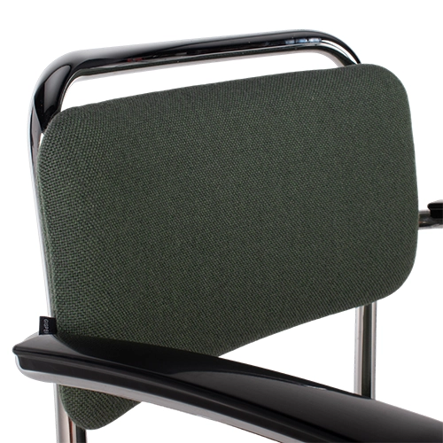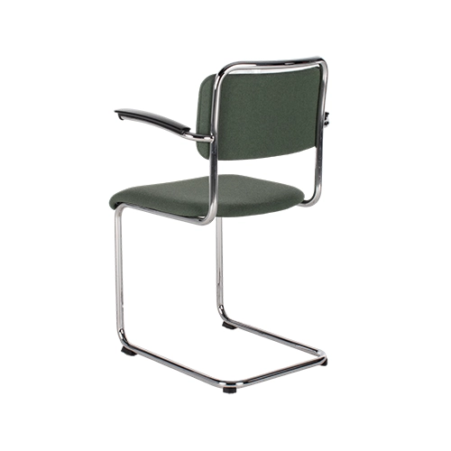 Dit is de Gispen 201XL donkergroen welke in 1931 voor W.H. Gispen werd ontworpen. De 201 is een veerende achterpoot loze stoel met een chroom buisframe uit één stuk. Zowel de rugleuning als de zitting zijn gestoffeerd in de groene stoffering van de Ploeg (Ploegwool // nr. 57). De armleuningen zijn van zwart bakeliet. Dit betreft de XL versie. De stoel is iets hoger, breder en dieper.