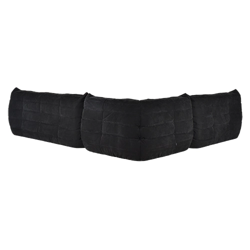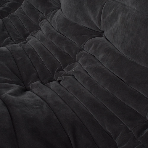 Deze Togo Sofa set bestaat uit drie elementen: een 2-zits (131x102cm), 3-zits (174x102cm) bank en een hoek element (102x103cm). Deze elementen kunnen aan elkaar geschoven kunnen worden tot een grote hoekbank maar kunnen ook los gebruikt worden. De hete set is gestoffeerd in de Alcantara stof in de kleur antraciet (slate black).