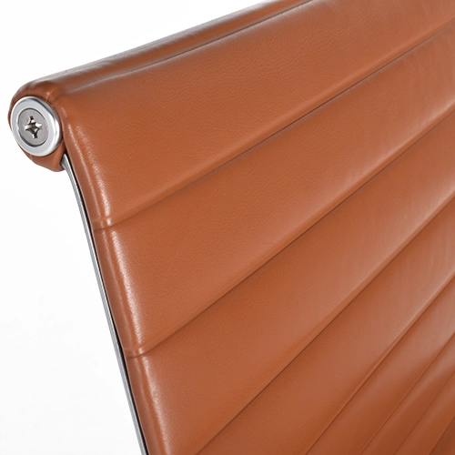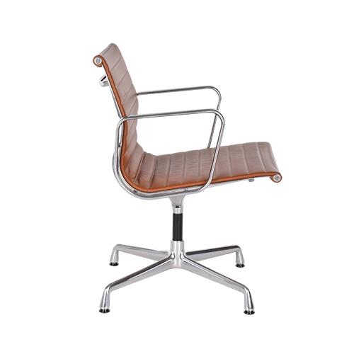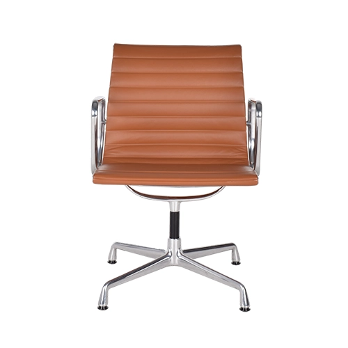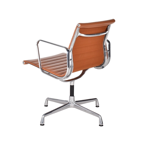 Dit is de Vitra EA108 stoel cognac leder, gestoffeerd in het Leather Premium F. Het frame is van chroom en draaibaar (v.v. viltglijders voor een harde vloer). Deze stoel is onderdeel van de Aluminium Serie welke door Charles & Ray Eames omstreeks 1969 werd ontworpen. Bekijk hier alle producten die we uit de Aluminum serie op voorraad hebben.